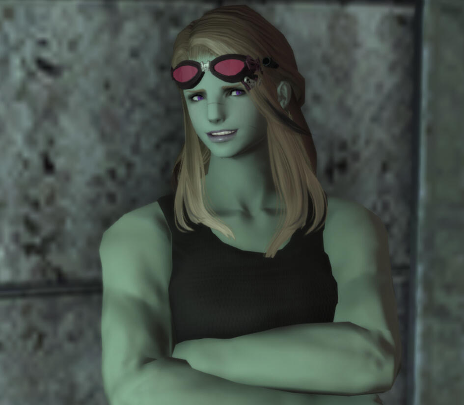 One of twin siblings born to Sthalswys and Aergahr, Waekswys, or simply Waek, first met her uncle shortly after he arrived in the Dravanian Hinterlands. Having grown up with the man nearby at nearly all times, she quickly formed a bond with him and often dreamed of going off on her own adventures into the wild. Fate would postpone such dreams however, as the exodus from Emporium left she and her brother under her uncle's care on their long journey south to find a new home.Naturally gifted with her hands, Waek found herself tinkering with machinery and tools from a young age, often watching Iyrn as he performed odd jobs and letting her curiosity get the best of her, sometimes to painful repercussions. Still, she learned from her mistakes and when she was seventeen summers old, she opted to see the world on her own terms, hopping aboard a trading vessel and plying her skill as a mechanic in exchange for pay and board. She has since returned to Eorzea and now works as a maintenance worker at the Desert Rose.Though she had to adopt a tough personality while at sea, any roughness to her demeanor is a facade. She enjoys the softer things in life just as she does the hard machinery she works with, and while shy, she wants nothing more than to meet new friends and continue to satiate her curiosity for the world and everything in it.