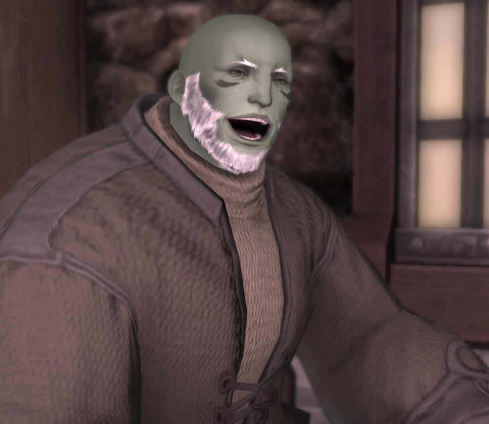 Berktyrn was well established in Sharlayan in his early life as a procurer of goods and assistant to many researchers who required exotic plants and animals for their studies. Strong of body and sharp of mind, there was very little the man could not obtain if he set his mind to it, and such was the case with the heart of his future wife, Doenbryda. Though their jobs often kept them apart, they by all accounts did love each other, and their relationship eventually brought forth Iyrnskylt, their only son, into the world.Things were not entirely as they seemed however, as Berktyrn was wont to be gone from his wife and child for months on end, and it was eventually discovered that the man had sown his wild oats in Emporium and who knows where else. This revelation led to a rift with his wife and even his own son, and he was not encountered by the latter until the Sharlayan exodus from the Dravanian Hinterlands.In the current day, Berktyrn is a shell of his former self, having suffered a grievous blow to the head while protecting his son and grandchildren. The wound never fully healed and has had increasingly poor memory ever since, being unable to even recall the names of some of his closest family. Ignorance may be bliss however, as he still seems to enjoy his life and is currently under the care of his loving son.